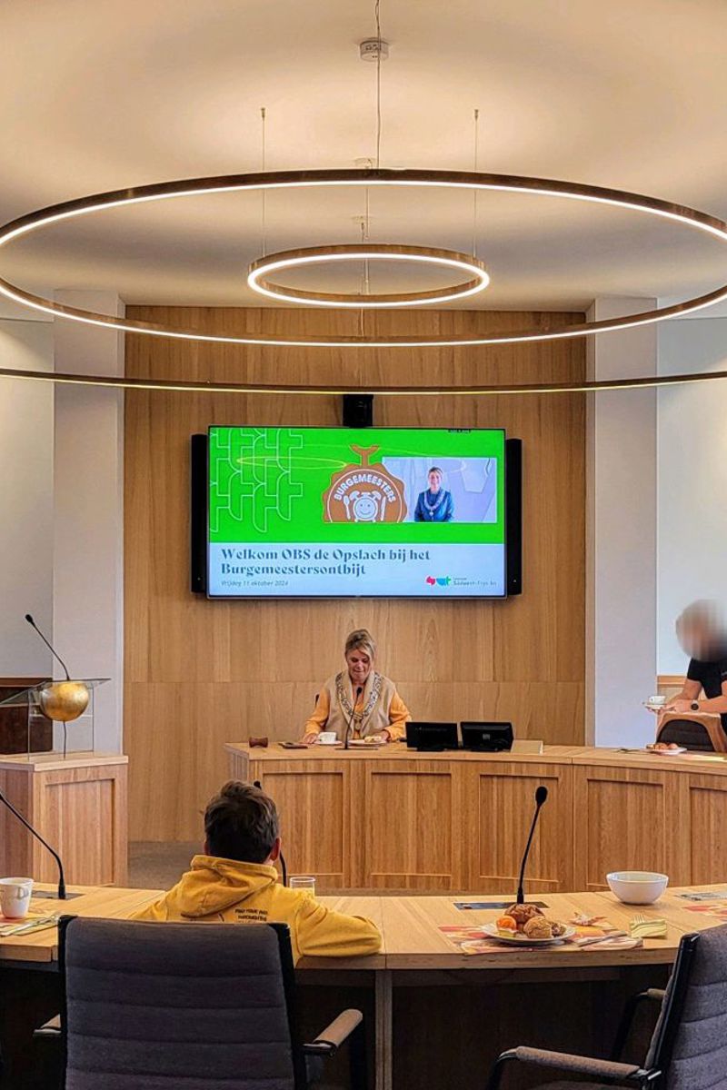 Het Burgemeestersontbijt is een vast onderdeel van het Nationaal Schoolontbijt. Daarbij staan het welzijn en de gezondheid van alle Nederlandse kinderen bovenaan het verlanglijstje. Het is namelijk een feit dat veel kinderen niet, niet altijd of niet gezond ontbijten. Aandacht hiervoor blijft belangrijk. Dit jaar is groep 7/8 van onze school uitgenodigd om te ontbijten met de burgemeester op het gemeentehuis.